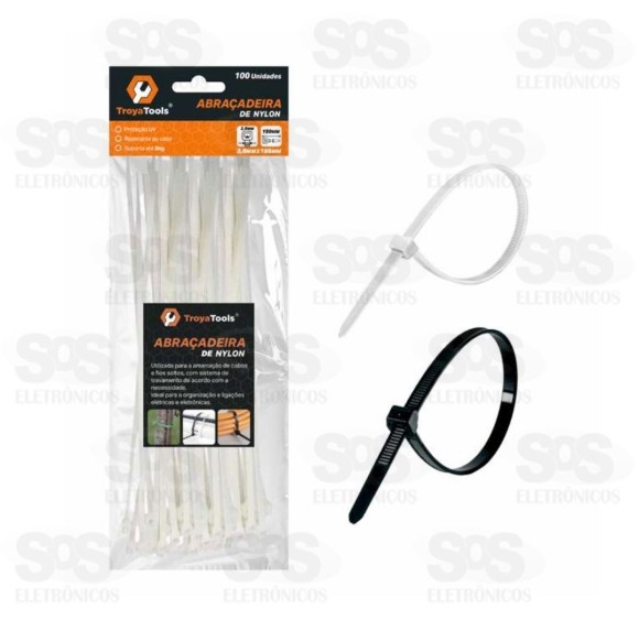 Abraçadeira De Nylon 3x150MM Com 100 Unidades TroyaTools TRY-0065