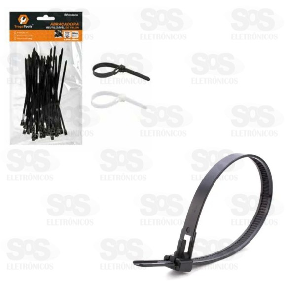 Abraçadeira De Nylon Reutilizável 4,8mmx200 Com 50 Unidades TRY-0088