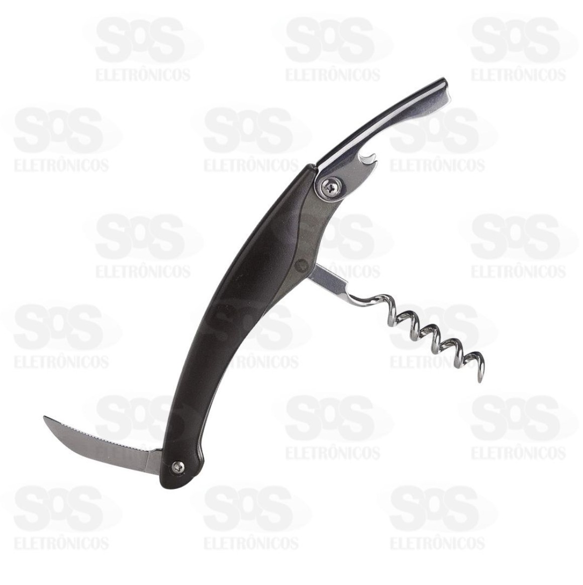Sendo multi-funções, ele é abridor de garrafas, saca-rolhas e abridor de latas.