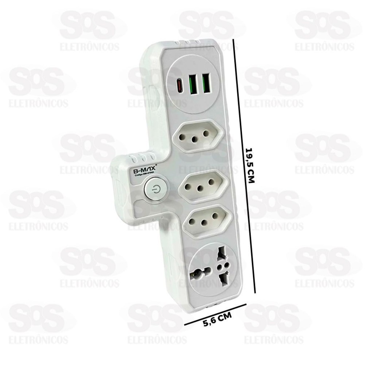 Adaptador 3 Tomadas Com USB e Type C B-Max BM-8704A
