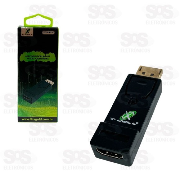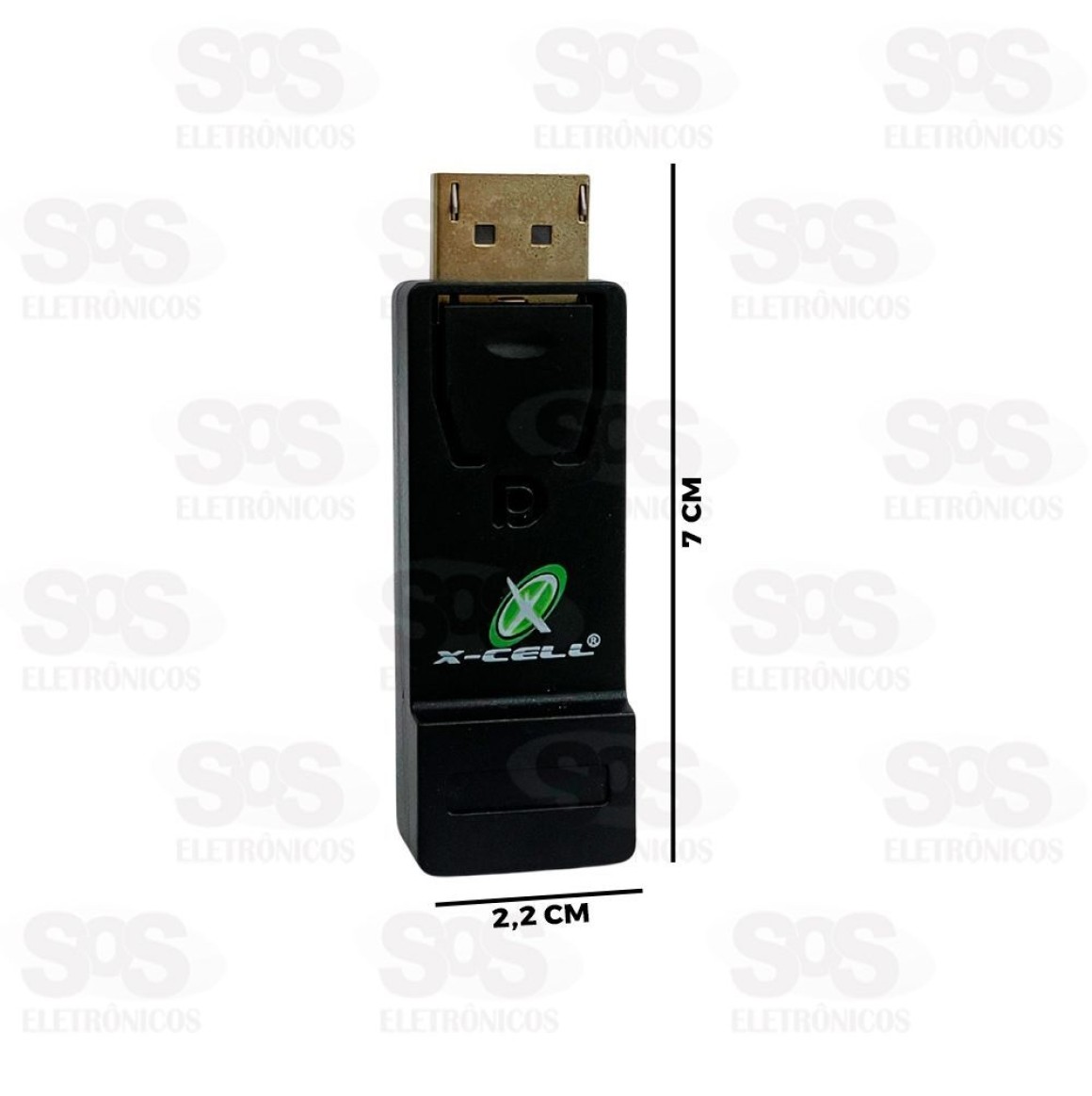 Adaptador Displayport Macho x HDMI Fêmea X-Cell XC-ADP-26 Esse adaptador é ideal para conectar monitores, displays e dispositivos HDTV com conector HDMI junto a desktops e laptops com conexão DisplayPort. Suporte superior à resolução AXGA (2048x1536) em profundidades de cores de 24 bits. Padrões VESA e CEA. Sistema plug and play. Tamanho: 7 x 2,2 cm