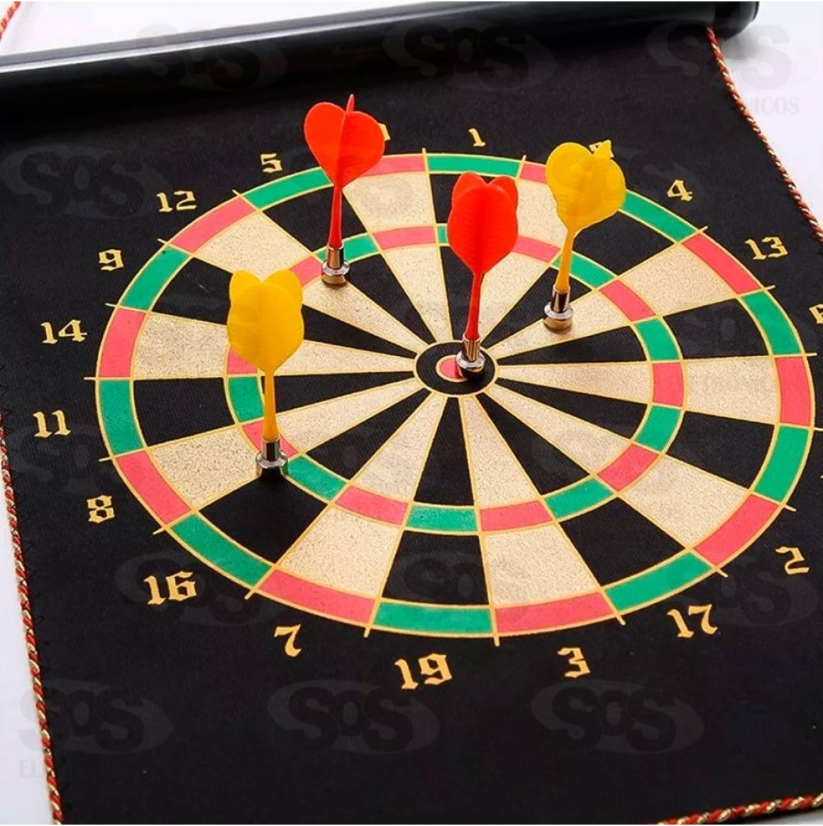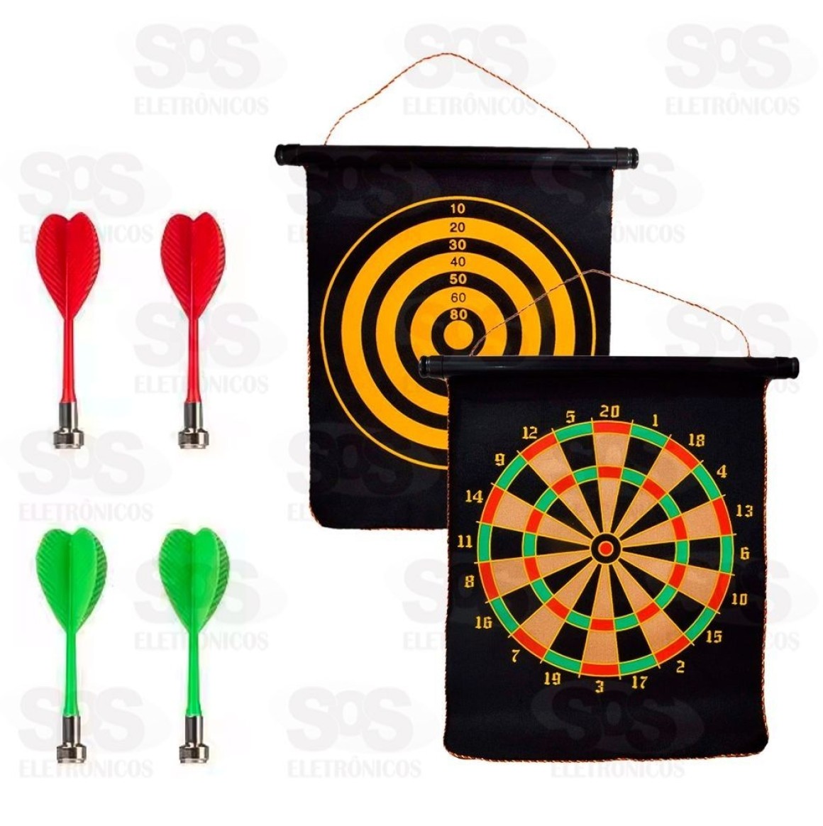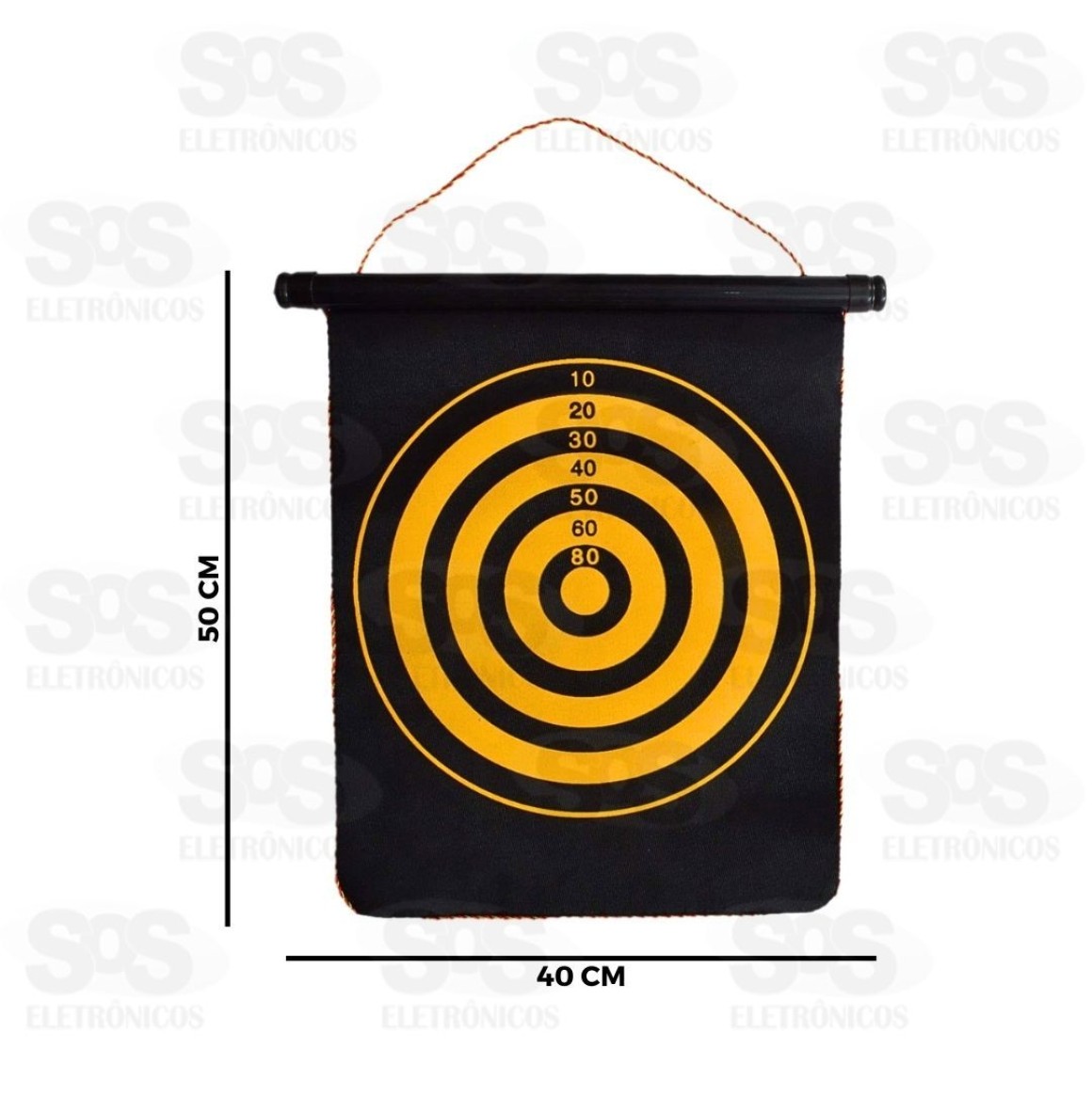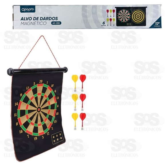 Alvo Lança Dardos Magnético 2 em 1 AD-058 Lança dardos magnético para treinar a mira. Acompanha 6 dardos com a ponta de imã que não machuca. Pode ser usado dos 2 lados, com alvos diferentes. Com cordinha para pendurar. Tamanho: 50 x 40 cm