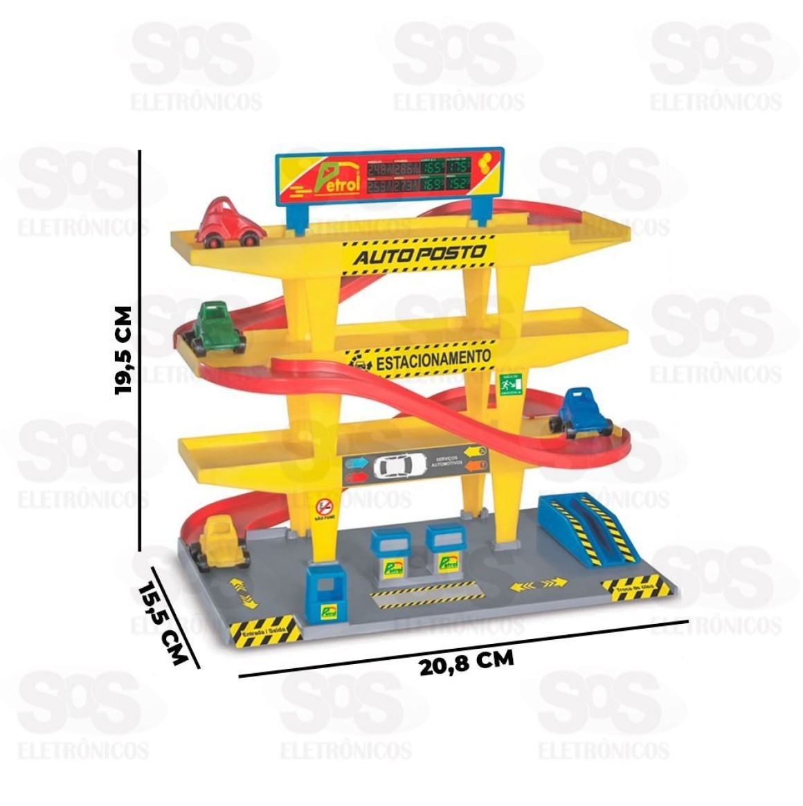Um super posto de gasolina com troca de óleo, bomba de combustível e 3 rampas iradas para soltar os carrinhos.