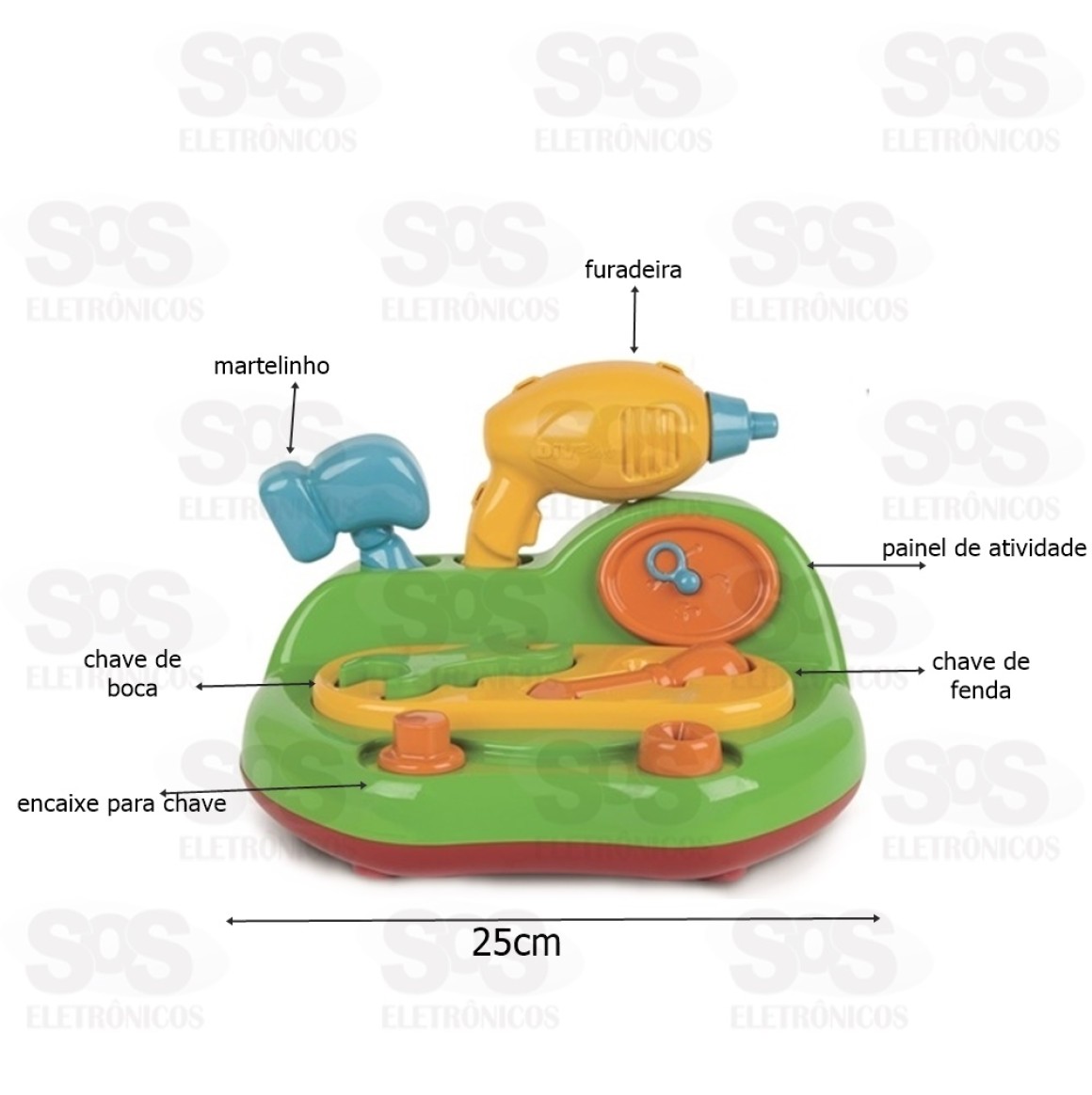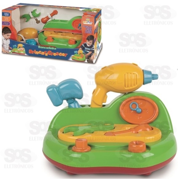 Conteúdo da Embalagem: 01 bancada de ferramenta com várias peças e cores variadas