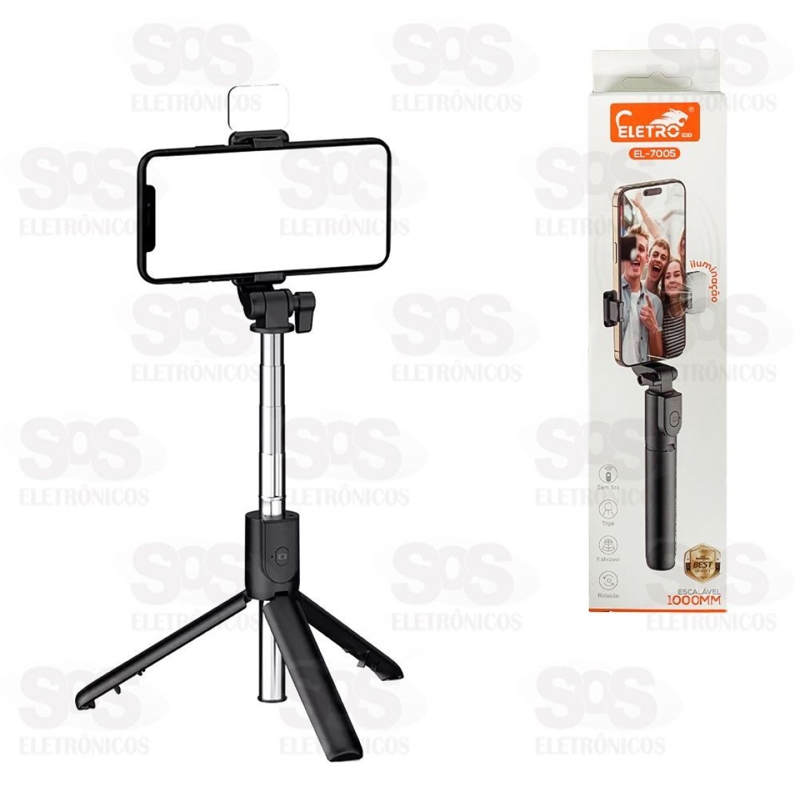 Bastão De Selfie Com Iluminação e Controle Remoto Tripé Eletromex EL-7005