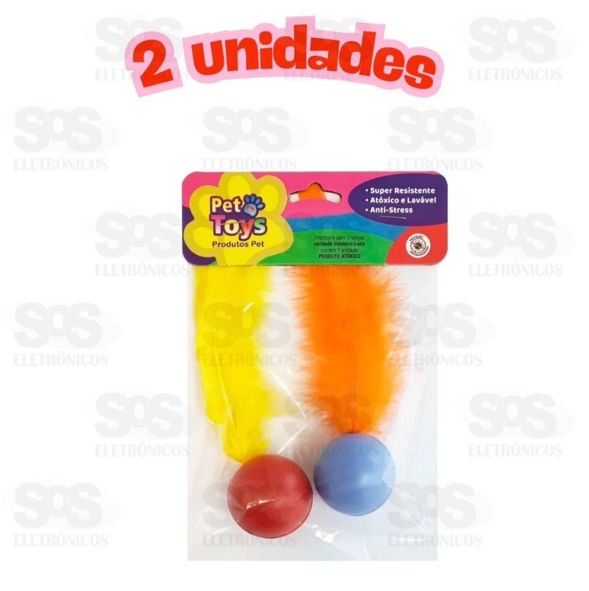 Bolinha Fechada Com Gizo e Pena para Gatos com 2 Unidades Pet Toy 1947