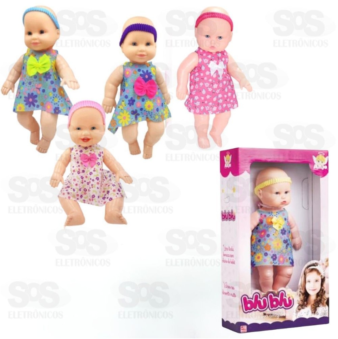 Braços e pernas articuladas Marca: Anjo Brinquedos Estampa sortida (cor do vestido pode variar devido estoque) Composição: Vinil, polietileno, plástico, roupa de pano Indicação: +3 Anos Certificado de Segurança: INMETRO