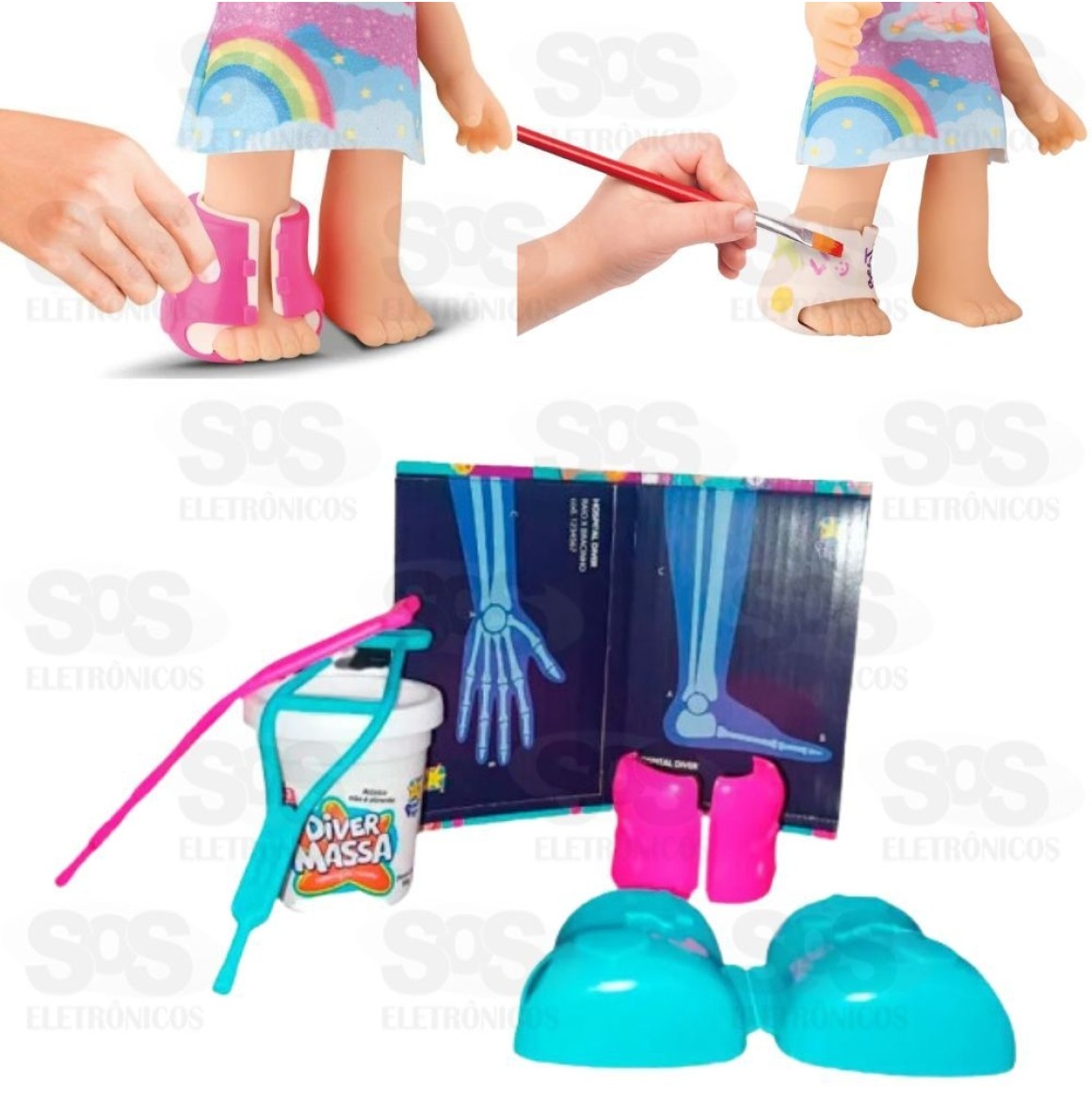 Engessamento Divertido: Após identificar os machucados, utilize os moldes e as massinhas para engessar o bracinho ou a perninha da boneca, promovendo o aprendizado sobre cuidados com ferimentos.
