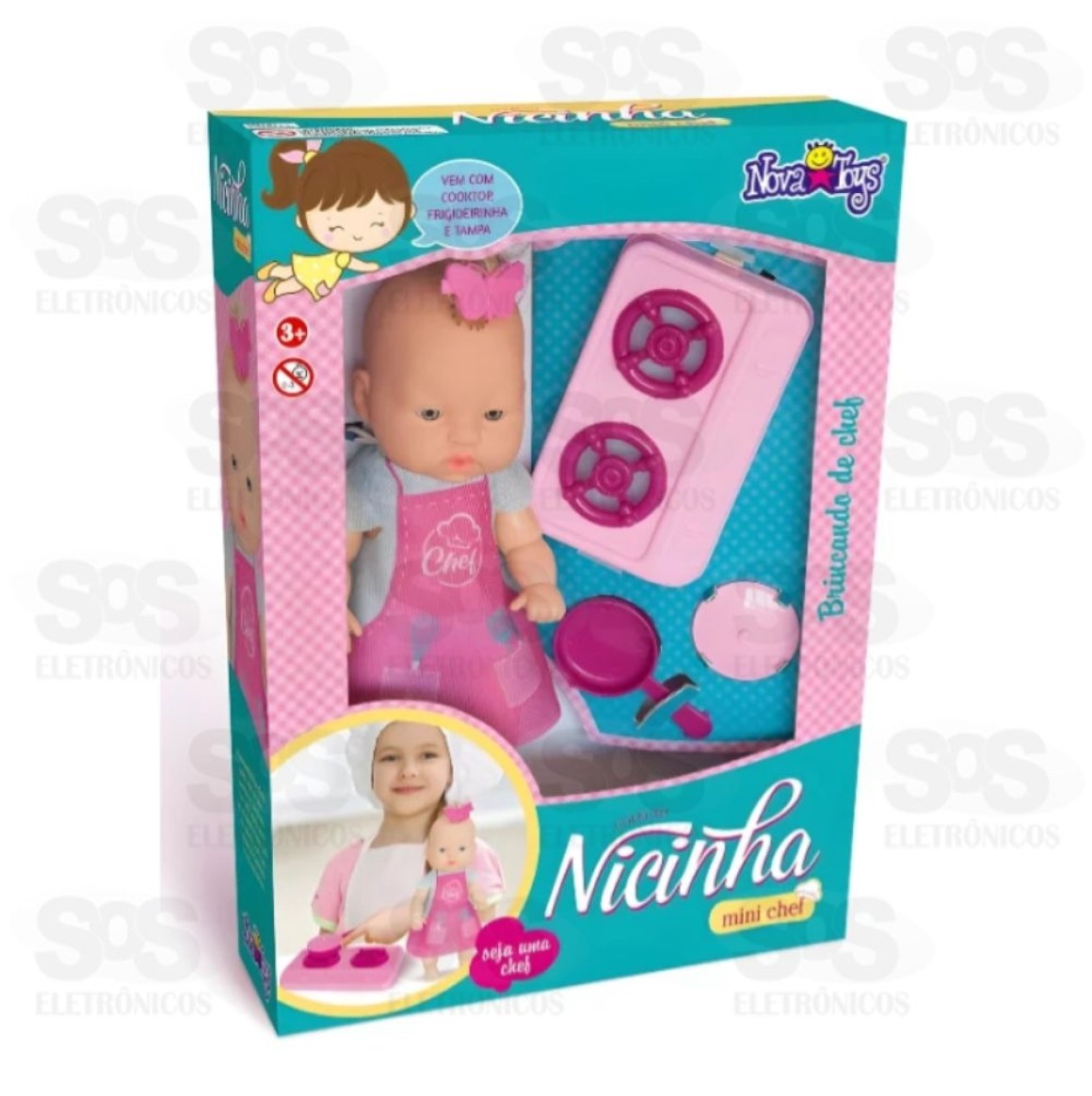Boneca Nicinha Mini Chef 1164 A brincadeira está completa, acompanha fogaozinho e panelinha Medidas da boneca: 23 cm Medidas: 34 x 7 x 24,5 cm Ref: 1164 Marca: Nova Toys