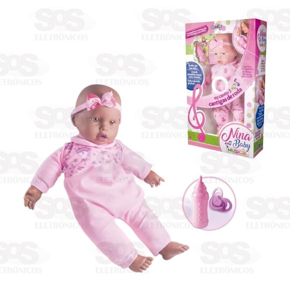 Boneca Nina Baby Musical Negra 50cm Nova Toys 1048