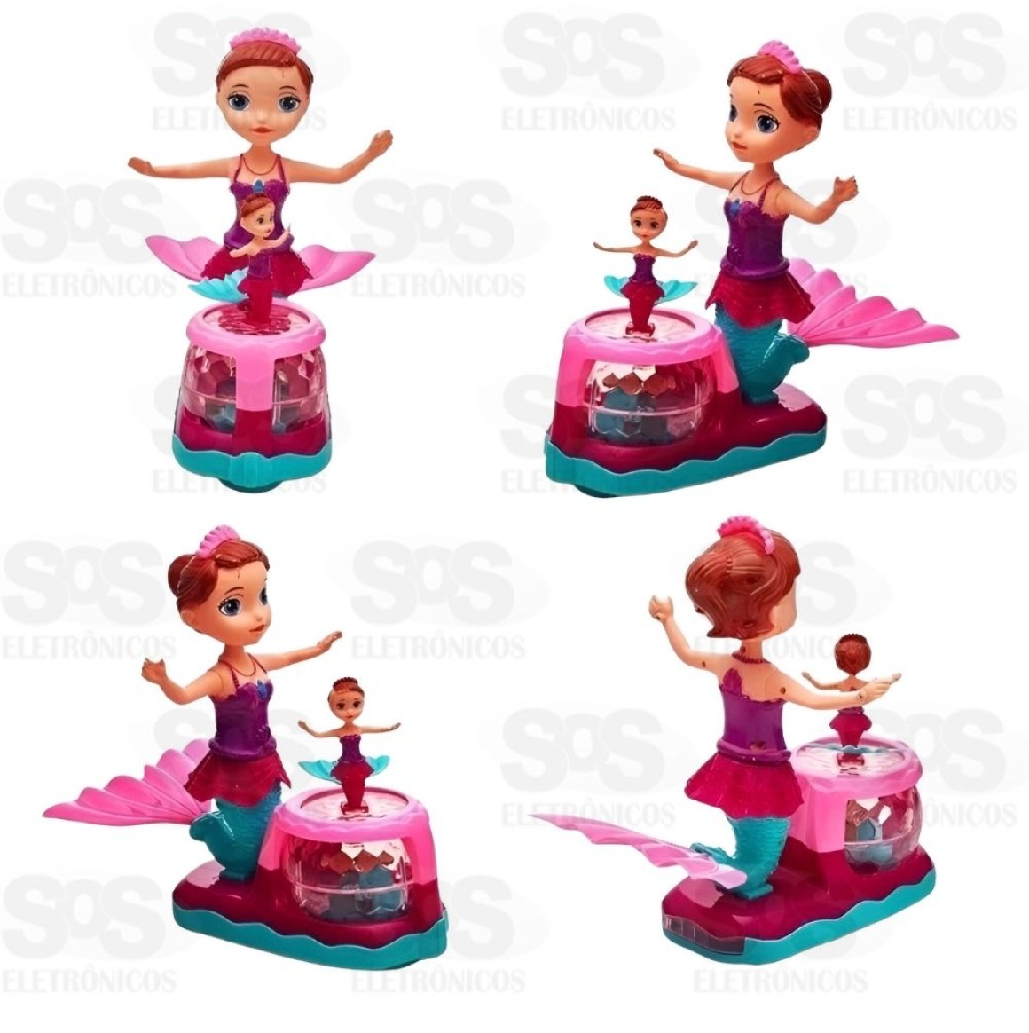 Boneca Sereia Bailarina Luz e Som Gira 360 Graus Toy King TK-1045