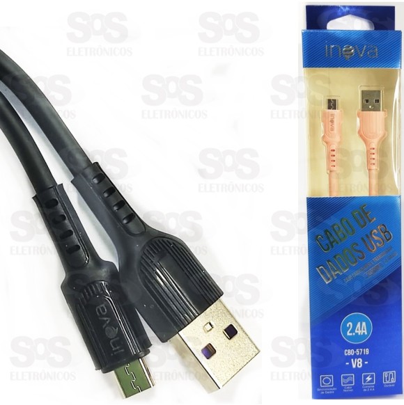Cabo Micro USB V8 2 Metros 2.4A Emborrachado Inova CBO-5719