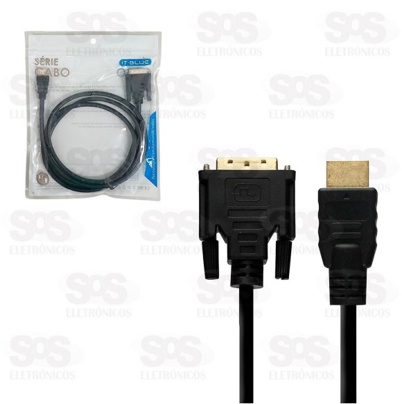 Cabo DVI Para HDMI 3 Metros It-Blue LE-6626-3M Cabo multimídia de alta definição DVI macho para HDMI macho. Possui filtro contra interferência. Para conectar monitores, TV's, receptores de sinal, etc... Cabo de 3 metros reforçado.