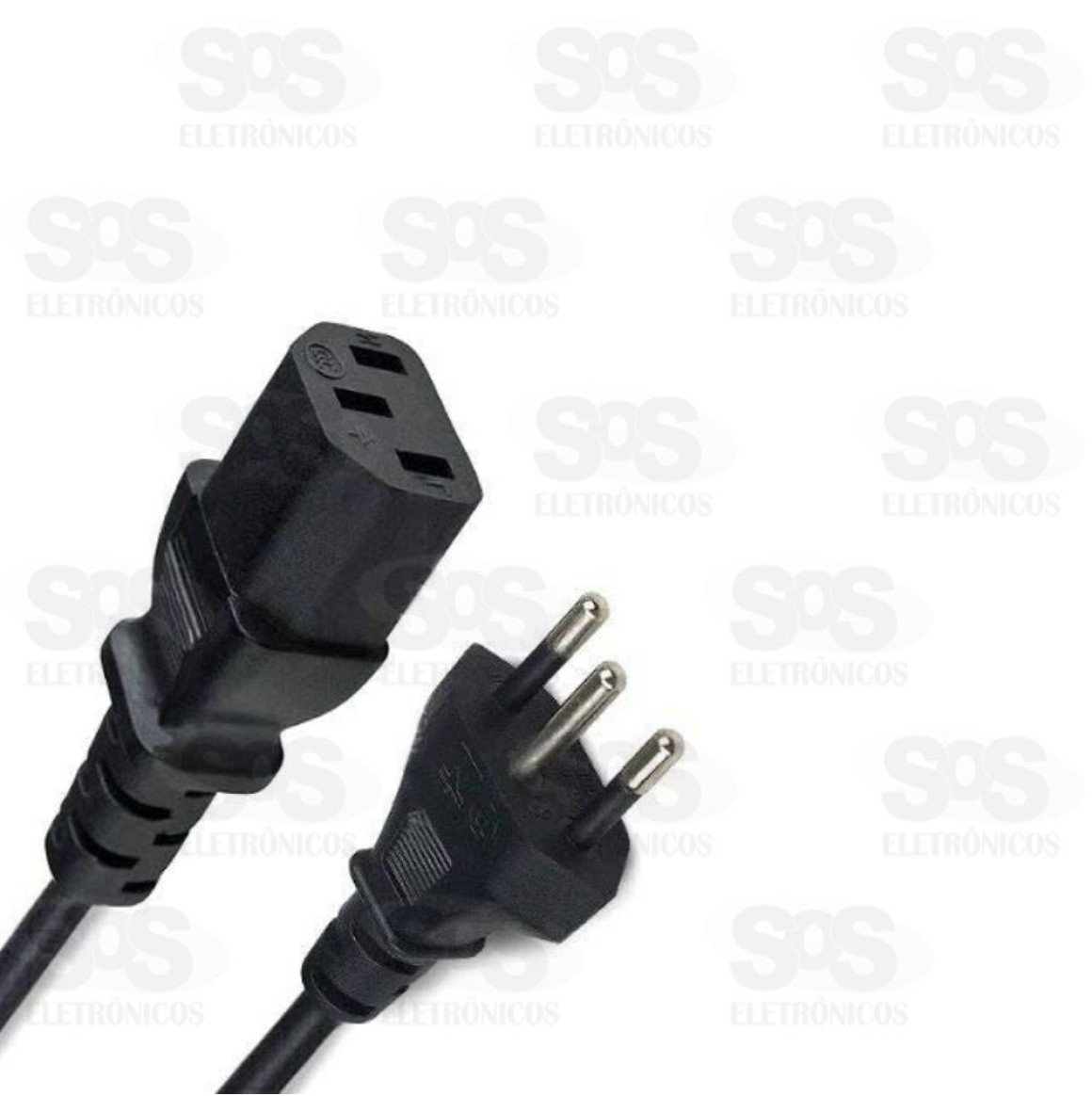 Cabo de força com 3 pinos para fontes, computadores, televisão, monitores e outros eletrônicos em geral que utilizem o mesmo padrão (Tripolar).
