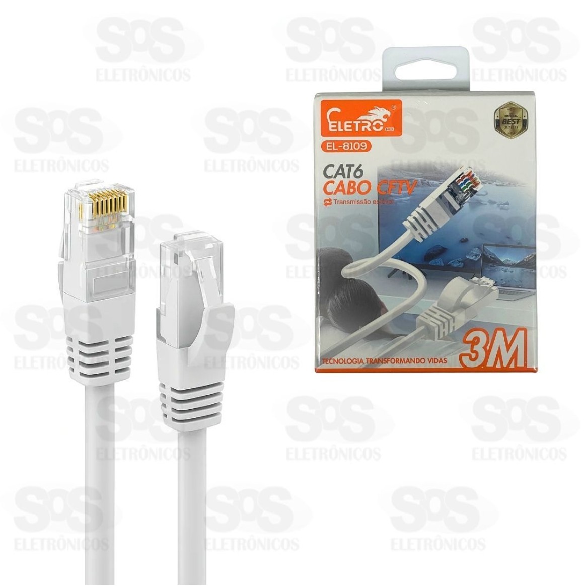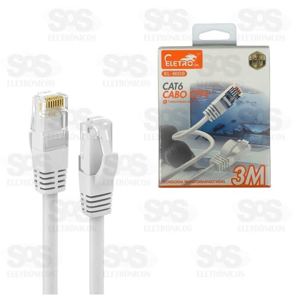 Cabo De Rede CAT6 3 Metros Eletromex EL-8109