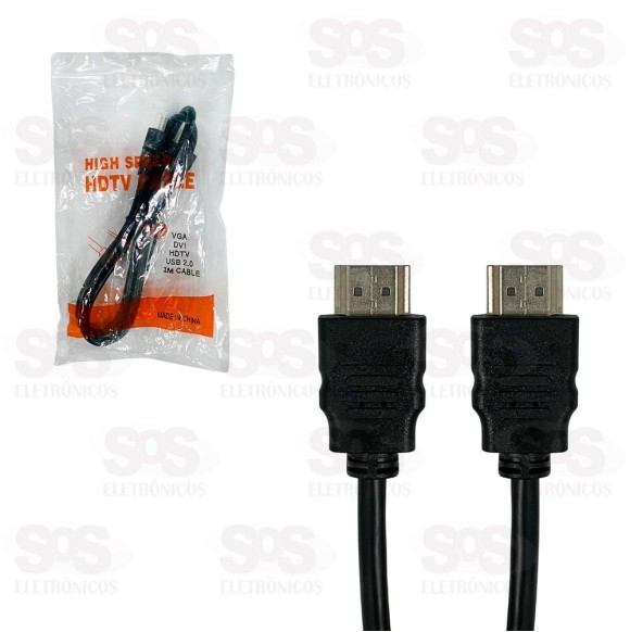 Cabo HDMI com 19 pinos. Garante uma transmissão estável e sem perda de sinais. Revestimento em PVC flexível. Compatível com TVs, monitores, projetores, notebooks, consoles, Blu-ray, DVD e outros aparelhos. Tamanho: 1 metro
