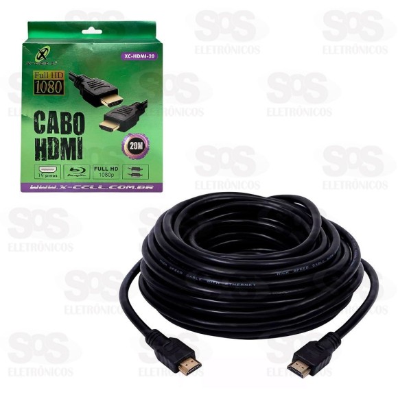 Cabo HDMI com 19 pinos. Possui filtro contra interferência. Condutores em cobre blindado para uma transmissão estável e sem perda de sinais. Revestimento em PVC flexível. Compatível com TVs, monitores, projetores, notebooks, consoles, Blu-ray, DVD e outros aparelhos. Tamanho: 20 metros