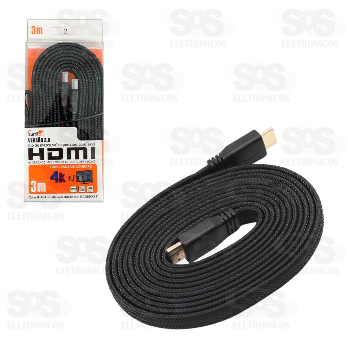 Cabo HDMI 4K 3 Metros Malha Blindada Eletromex EL-8102