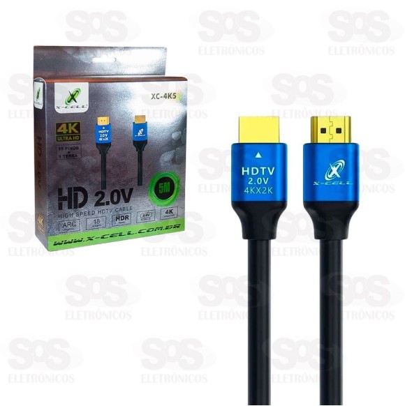 Cabo HDMI 4K ultra HD ideal para monitores, TVs, notebooks, consoles e outros aparelhos com entrada HDMI. Máxima fidelidade e performance livre de interferências. Suporta resolução de 4K ultra HD. Conectores em cobre blindado e revestimento em PVC flexível. Velocidade de até 18Gbps. Tamanho: 5 metros