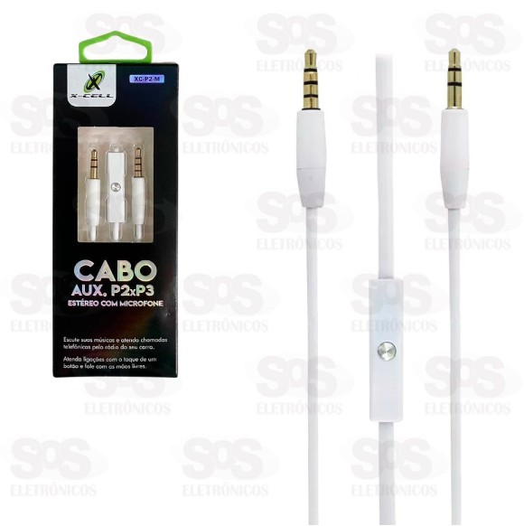 Cabo P2 Para P3 Estéreo Com Microfone 1,5 Metros X-Cell XC-P2-M