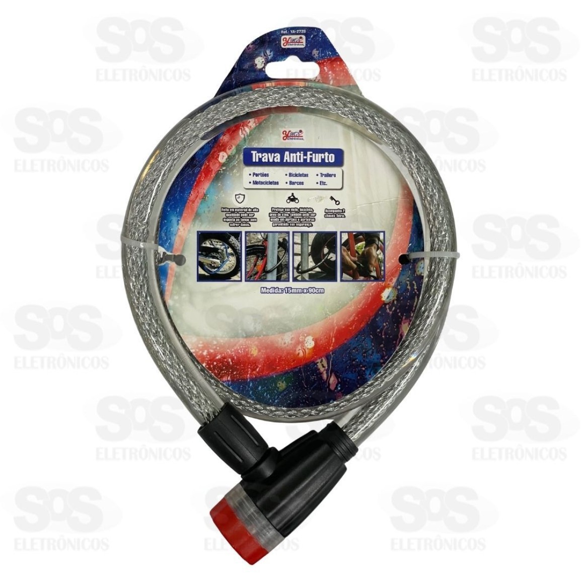 Cadeado Para Bicicleta 15mmx90cm Com 2 Chaves YA-2728