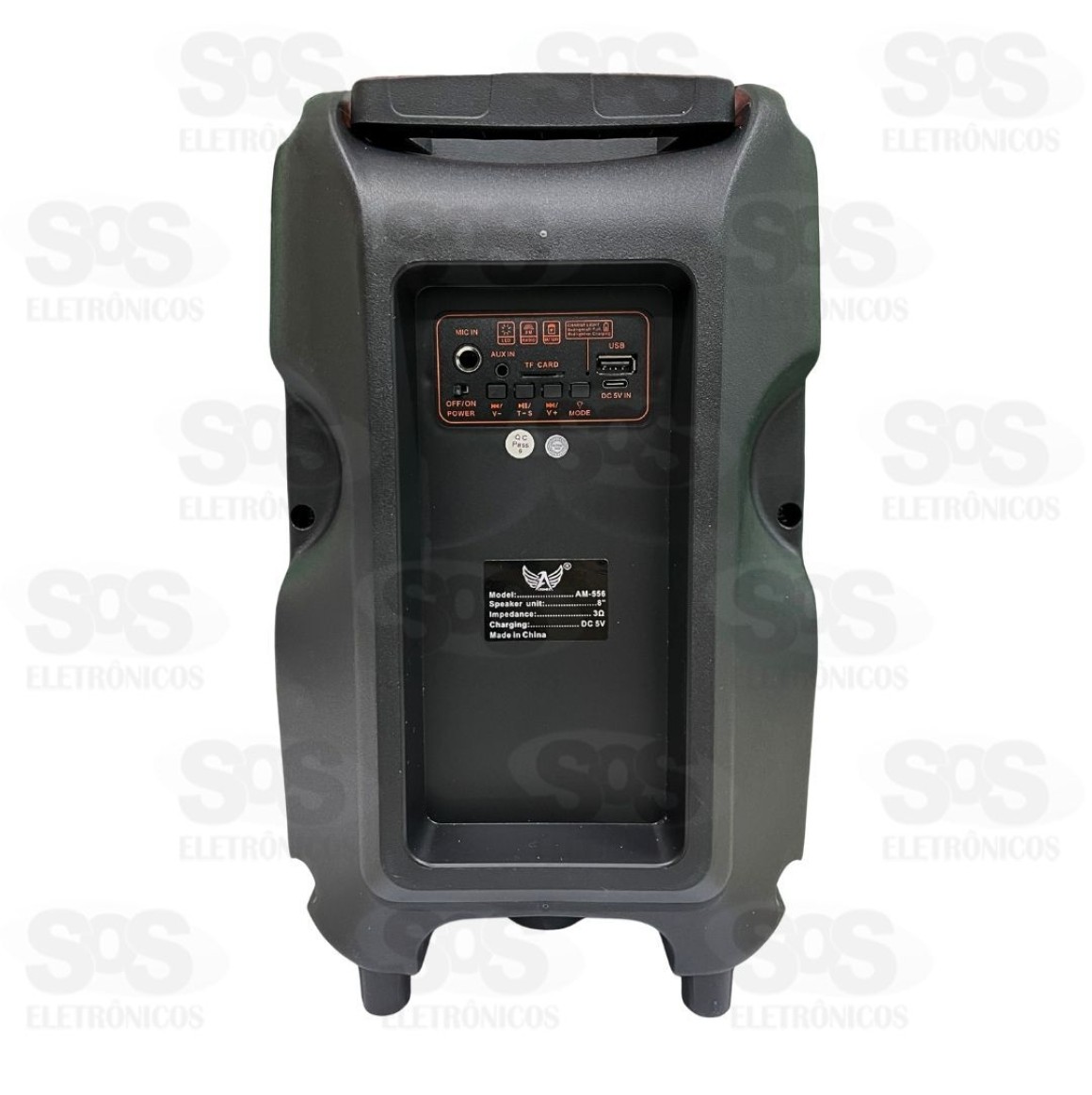 Entrada para USB, Cartão TF, Cabo Auxiliar e Microfone.
