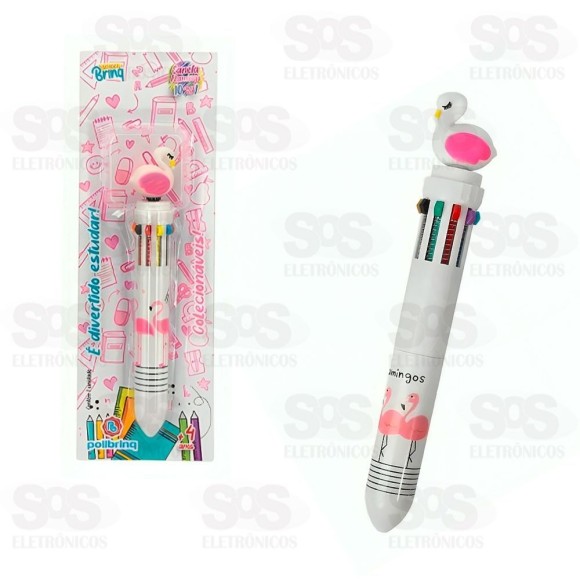 Caneta Com 10 Cores Flamingo Polibrinq SCB31