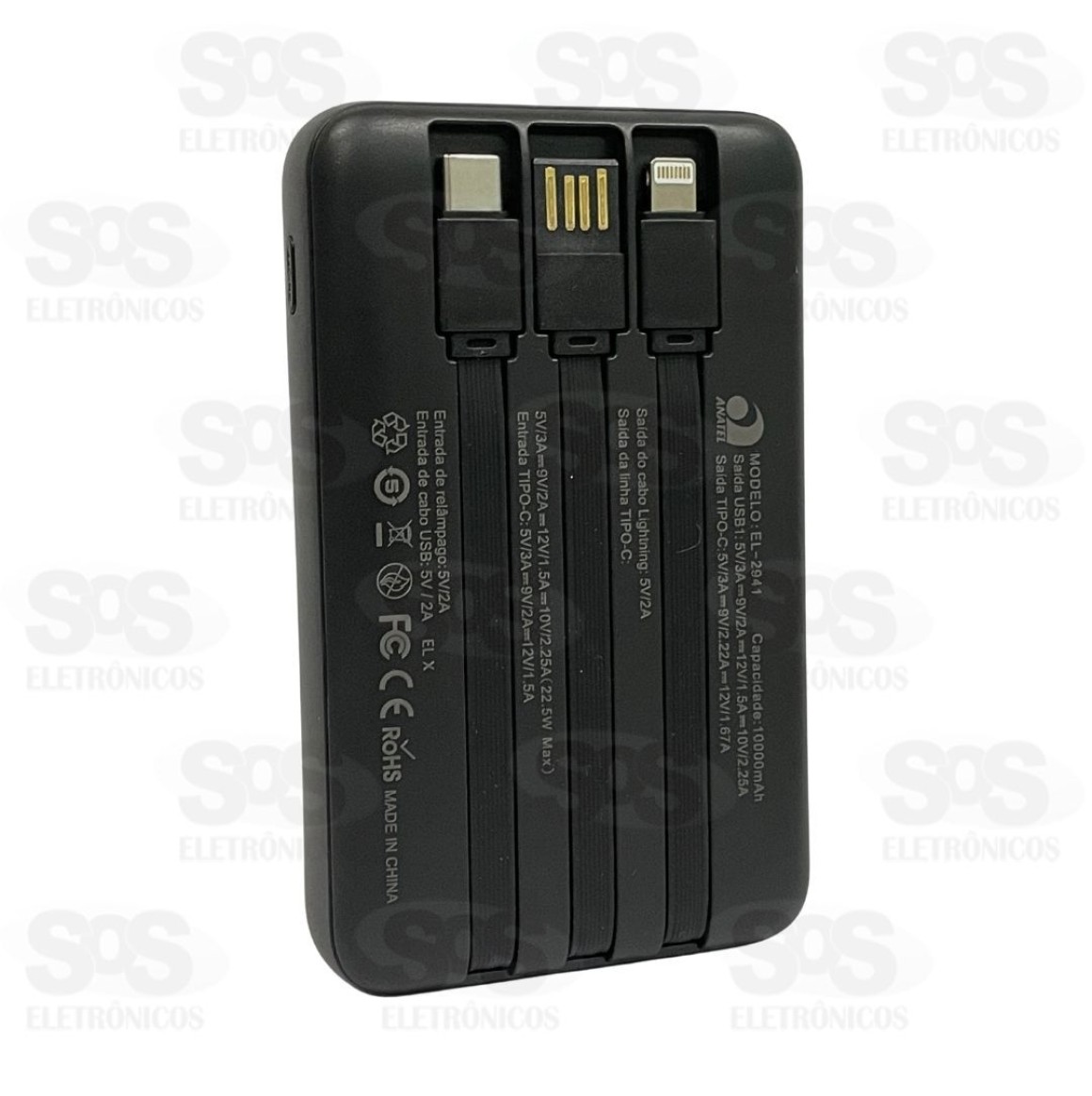 Carga Extra 10.000mAh 3 Interfaces Eletromex EL-2941