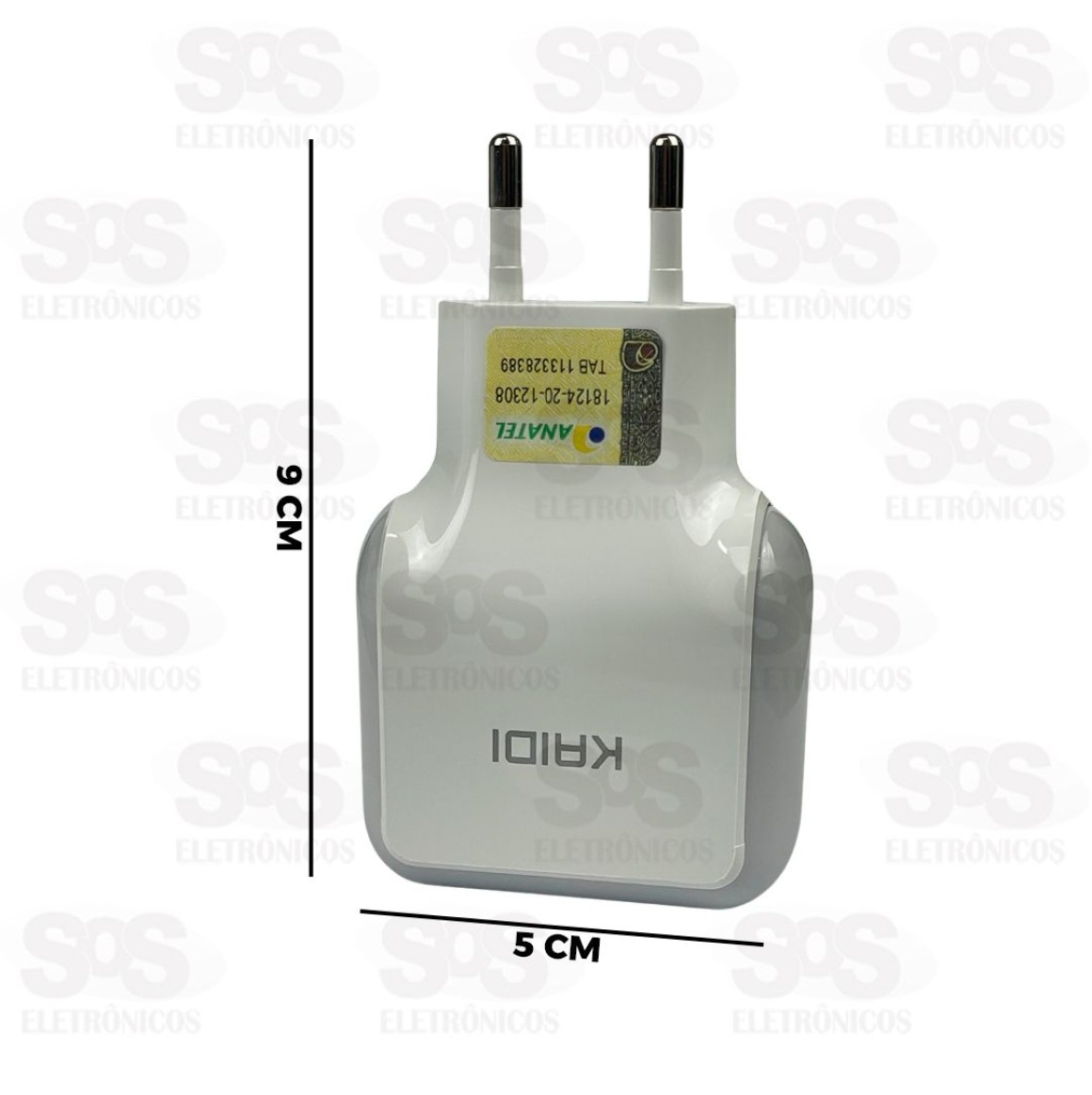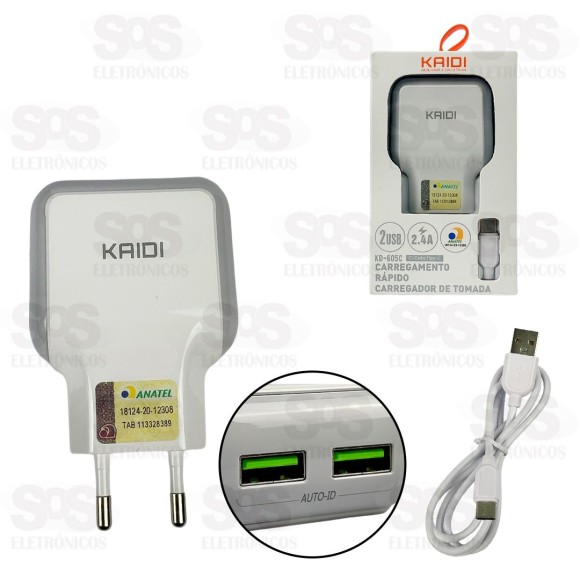 Carregador 2 USB 2.4A Com Cabo Type C Kaidi KD-605C