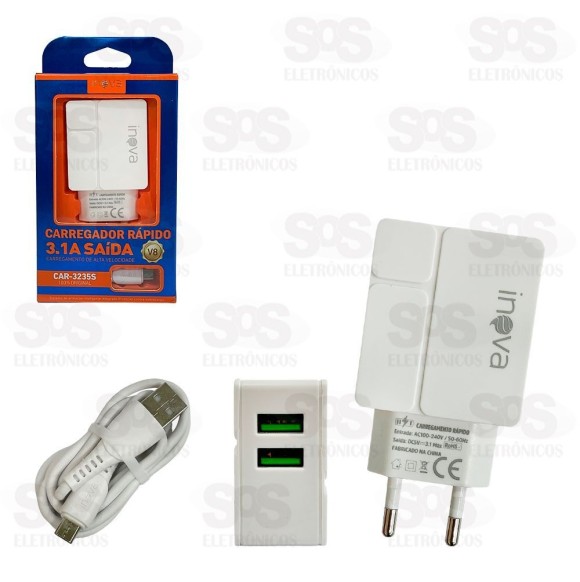 Carregador 2 USB 3.1A Com Cabo Micro USB V8 Inova CAR-3235S