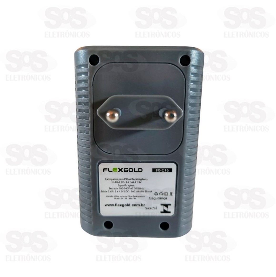 Carregador AA/AAA/9V Com 4 Pilhas Flexgold FX-C16-4P
