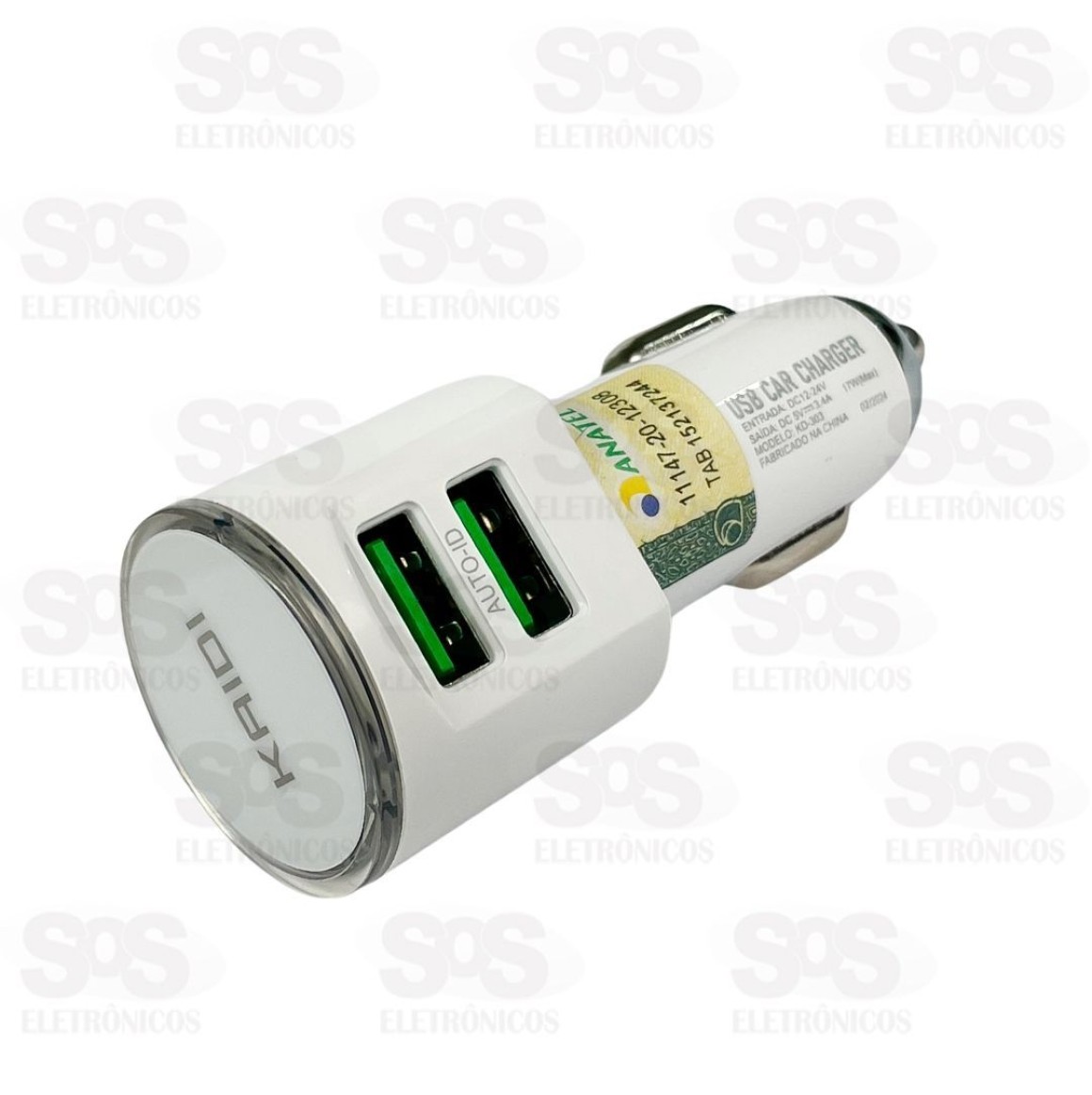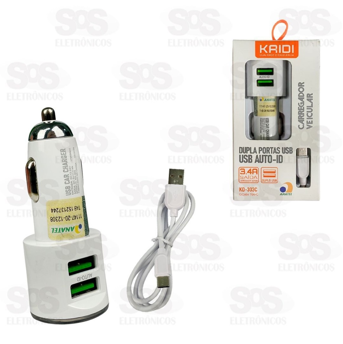 Carregador Automotivo 2 USB 3.4A Cabo Type C Kaidi KD-303C