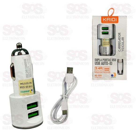 Carregador Automotivo 2 USB 3.4A Cabo Type C Kaidi KD-303C Com o carregador veicular você ficará sempre conectado, recarregue o celular, tablet, câmera e outros aparelhos enquanto dirige e em qualquer lugar. Conta com 2 portas USB 3.4A, recarregue até 2 aparelhos simultaneamente. Funciona em todos os veículos com entrada 12V/24V (bivolt) no acendedor. Carregamento rápido e seguro. Acompanha cabo Type C de 1 metro. Tamanho: 8 x 3 cm Cores variadas