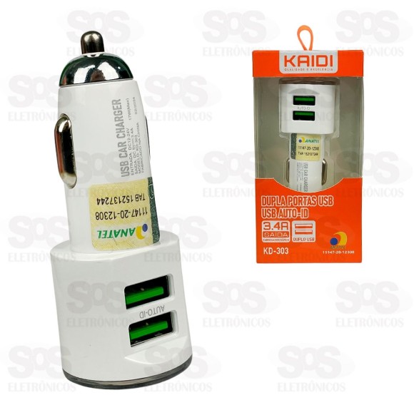 Carregador Automotivo Auto-ID 2 USB 3.4A Kaidi KD-303