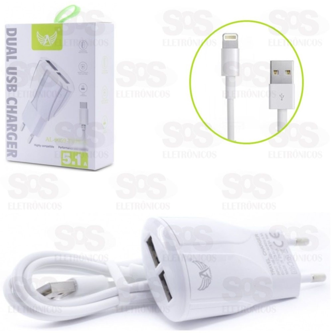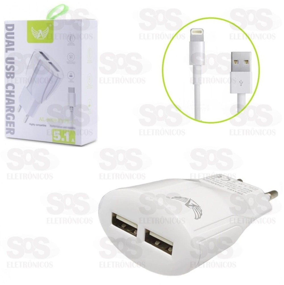 Carregador Com Cabo Iphone 2 USB 5.1A Altomex al-9059-5G