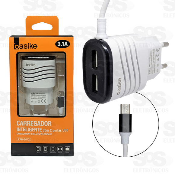 Carregador Micro USB V8 3.1A 2 USB Basike car-9012