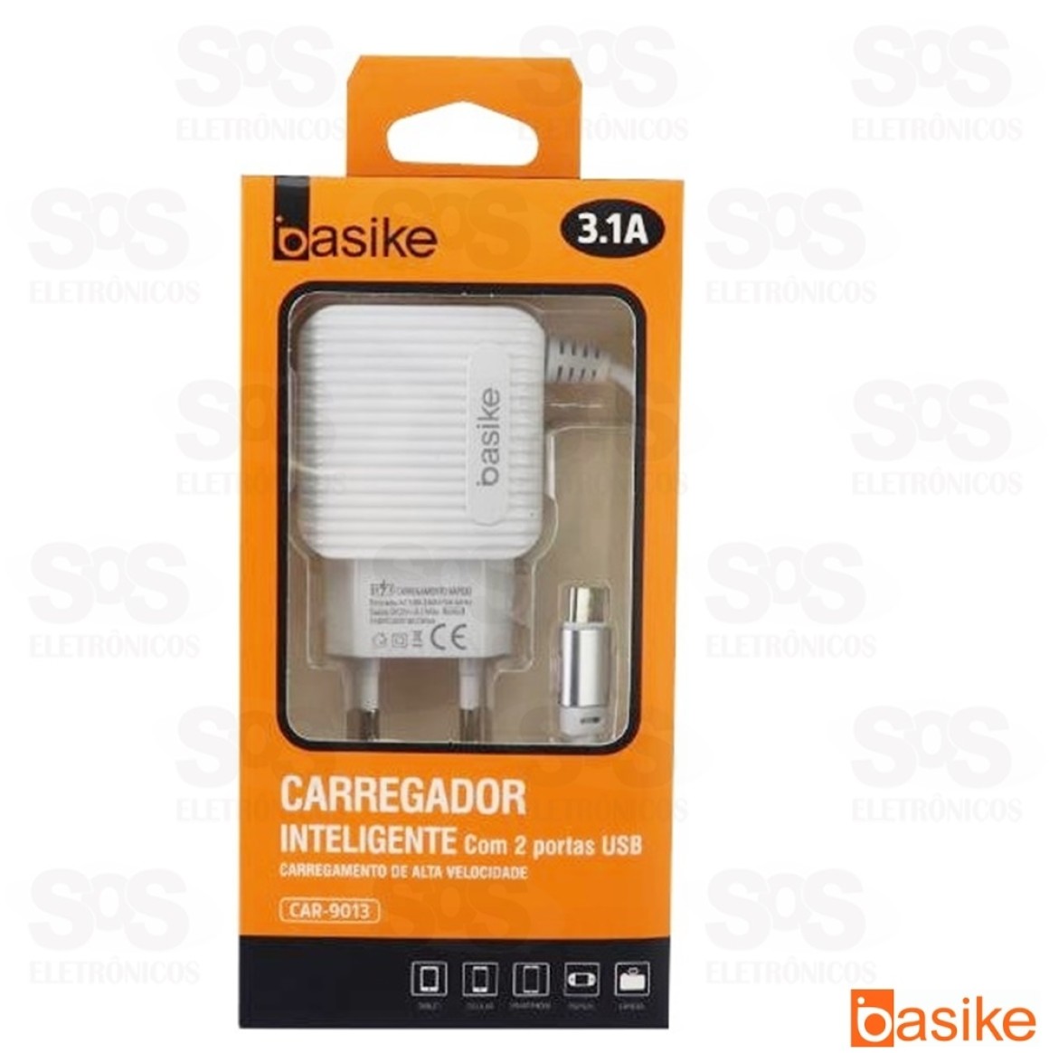 Carregador Micro USB V8 3.1A 2 USB BASIKE CAR-9013