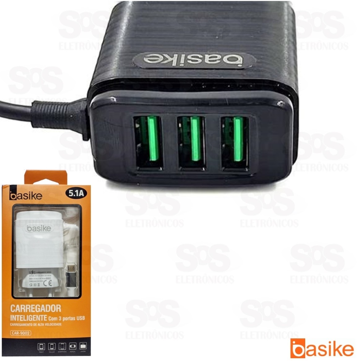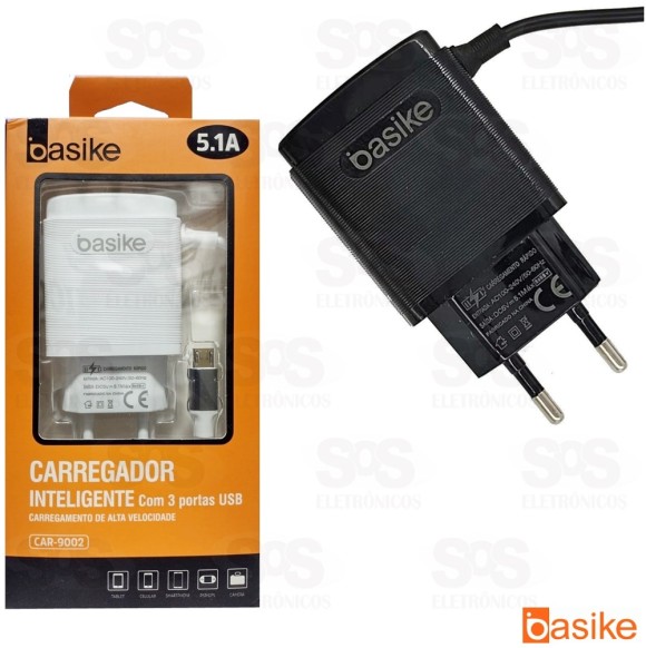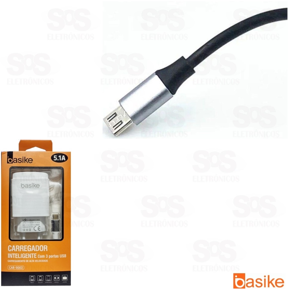 Carregador Micro USB V8 5.1A 3USB BASIKE CAR-9002
