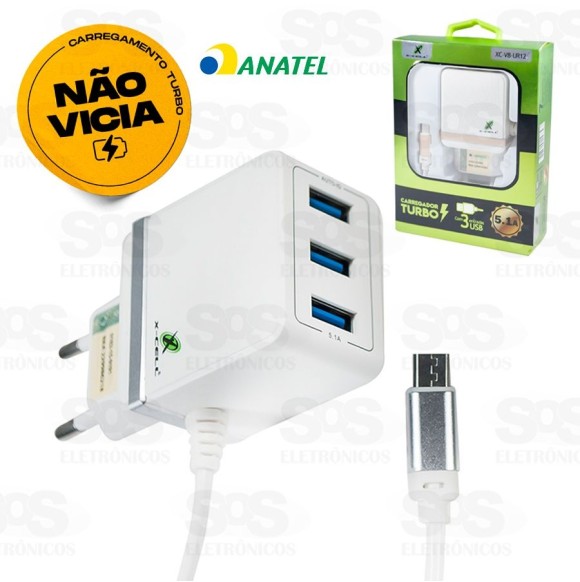 Carregador Micro USB V8 Turbo 5.1A 3 USB X-cell xc-ur12