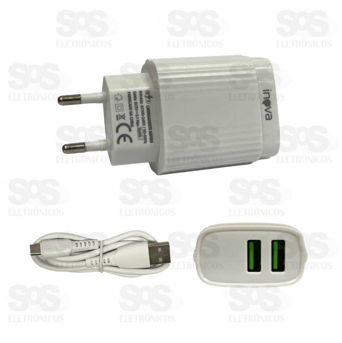 Carregador Rápido 2 USB 3.1A Cabo Micro V8 Inova CAR-3229S