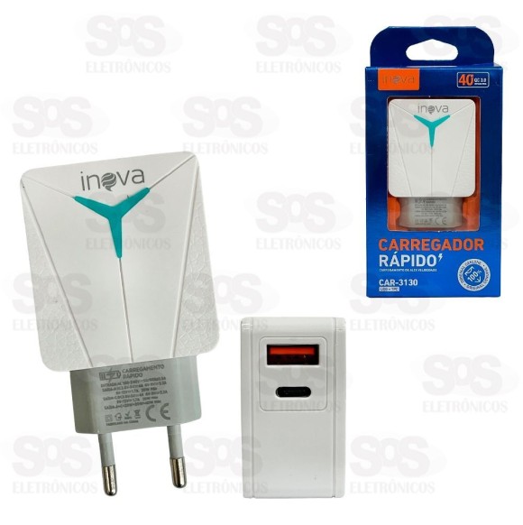 Carregador Rápido USB+TPC 40W Inova CAR-3130
