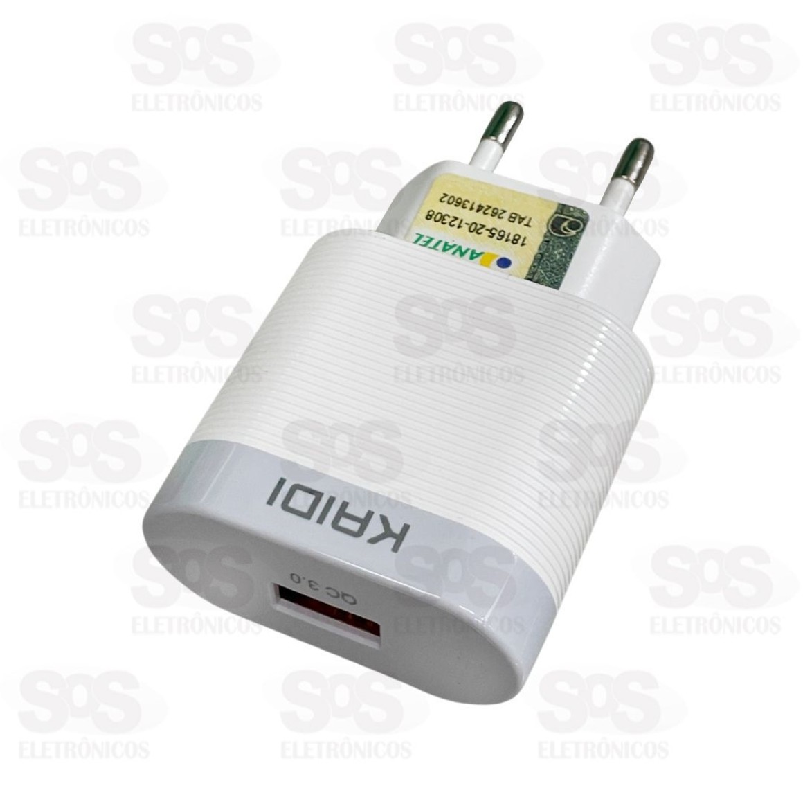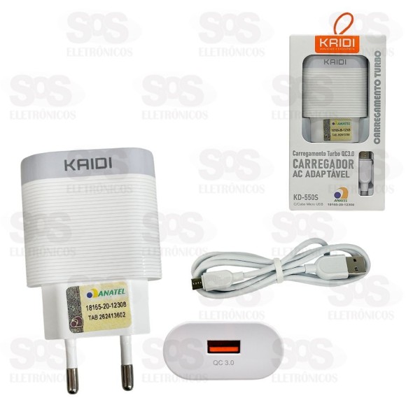 Carregador Turbo USB QC3.0 18W Cabo Micro USB V8 Kaidi KD-550S