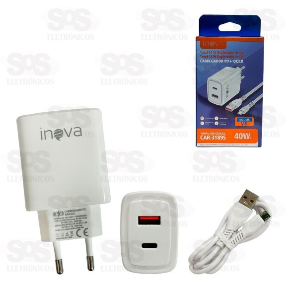 Carregador USB+TPC 40W Com Cabo Micro USB V8 Inova CAR-3189S
