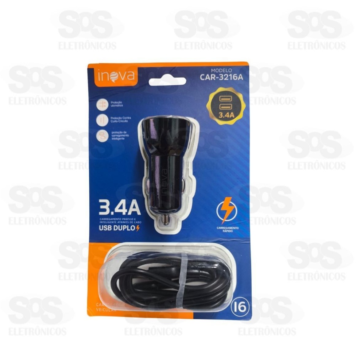 Carregador Veicular 2 USB 3.4A Cabo Iphone Inova CAR-3216A