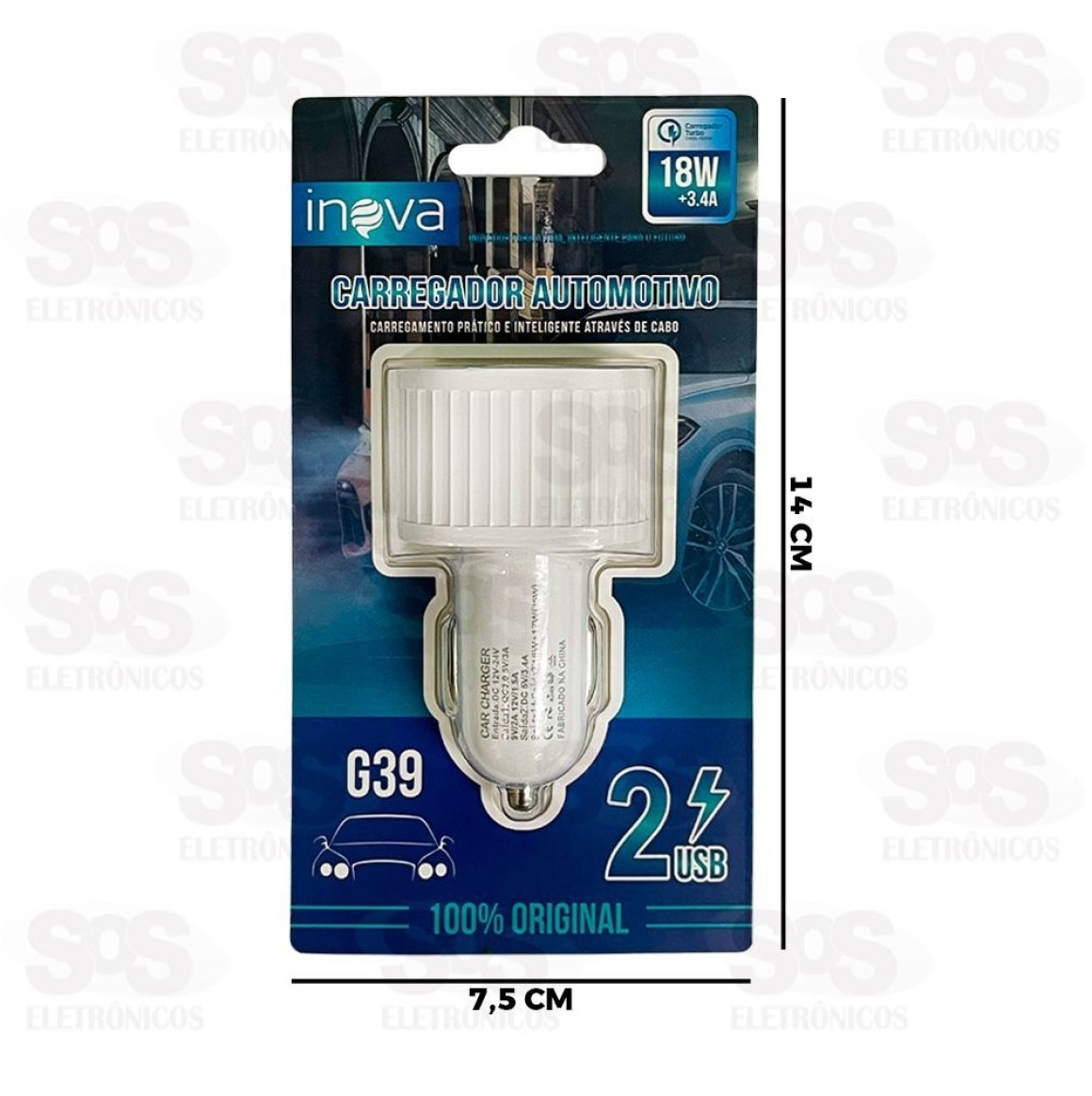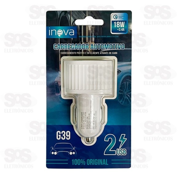 Carregador Veicular 3.4A Com 2 USB Inova G39