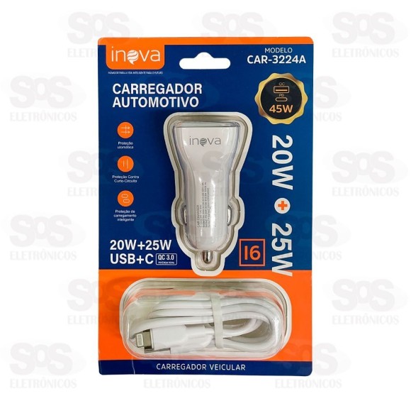 Carregador Veicular 45W Cabo De Iphone Inova CAR-3224A