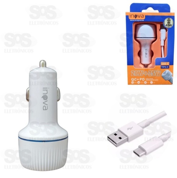 Carregador Veicular 1 USB 20W +1 Type c 25W Com Cabo Type c Inova G03-C