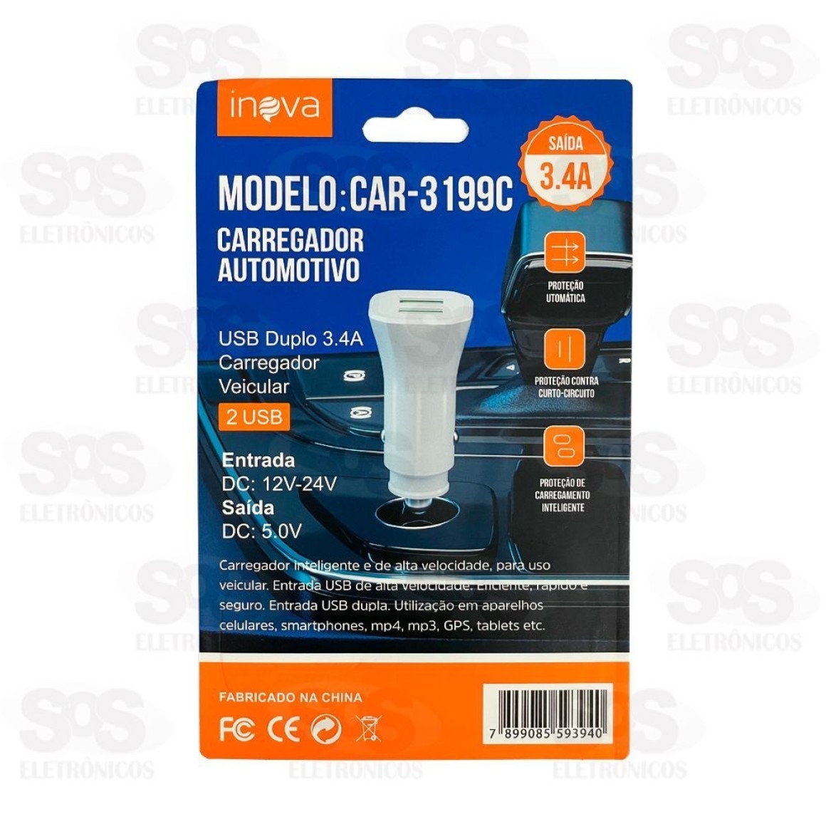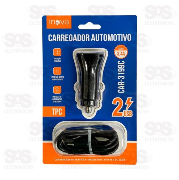 Carregador Veicular Com Cabo Type C 3.4A 2 USB Inova CAR-3199C