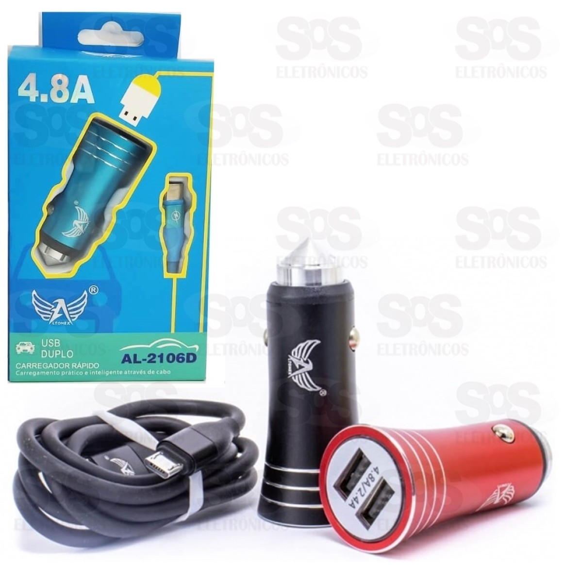 Carregador Veicular Type C Com 2 Portas USB 4.8A Altomex 2106d