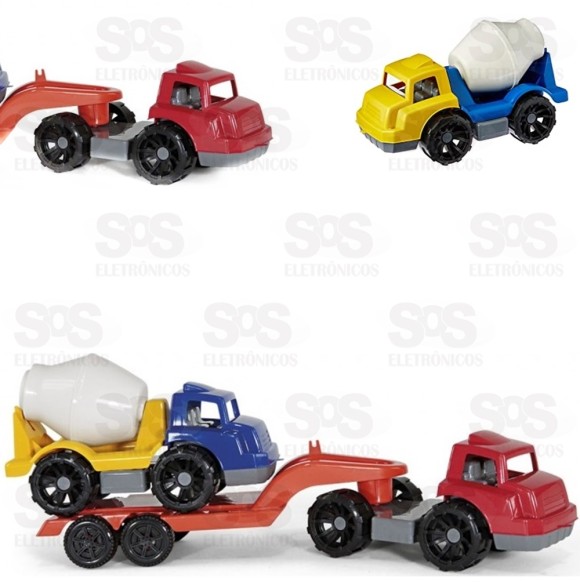 Carreta confeccionada em plástico e rodas livres, acompanha caminhão betoneira.